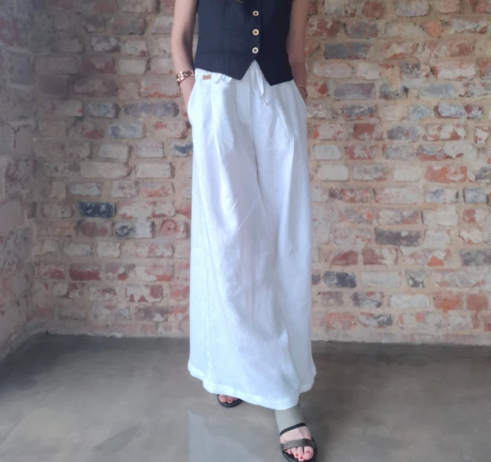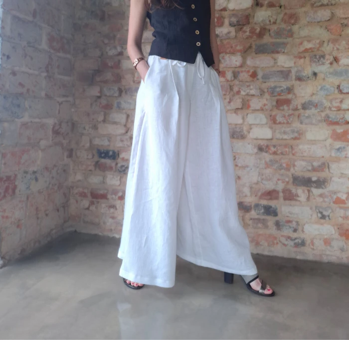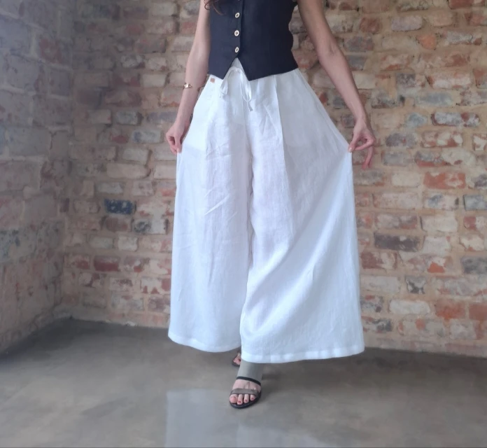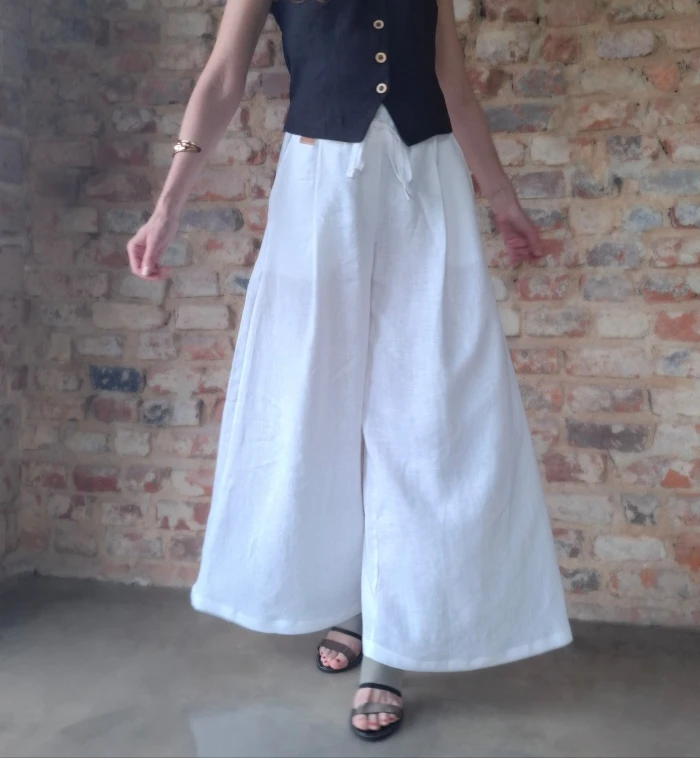 Damskie spodnie 100% LEN, SPÓDNICO-SPODNIE białe