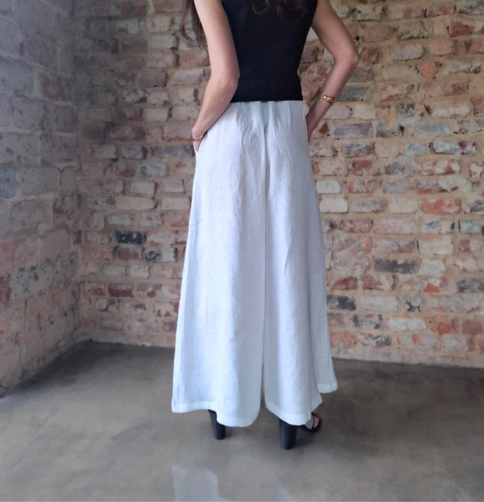 Spódnico-spodnie lniane, SZEROKIE białe
