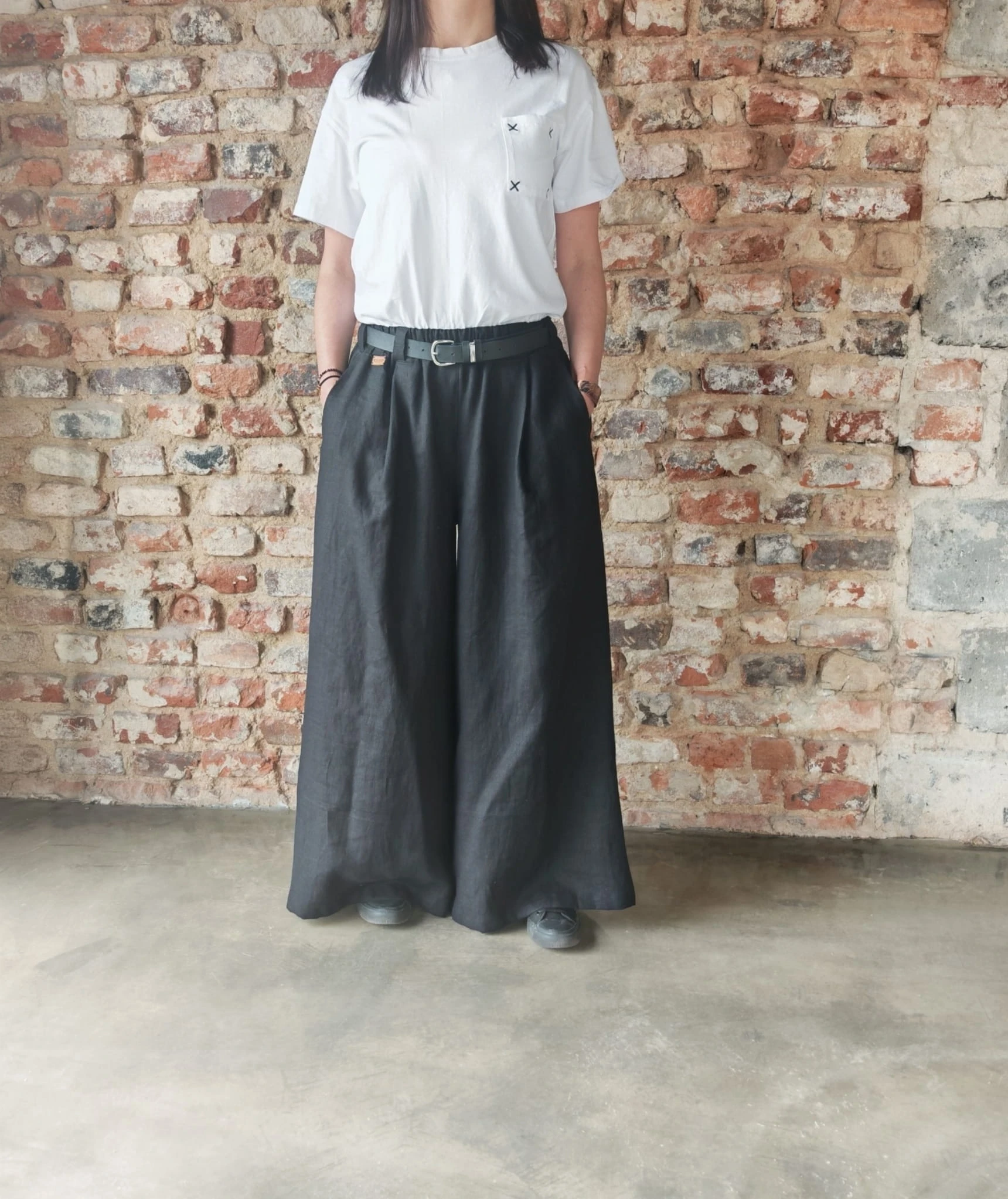 Wyjątkowo kobiece i niezwykle komfortowe spódnico- spodnie uszyte z wysokogatunkowej tkaniny 100% lnianej o gramaturze 230 g. Naturalny len zapewnia przewiewność, trwałość i piękne układanie materiału, a jego szlachetna struktura podkreśla ponadczasowy charakter modelu.