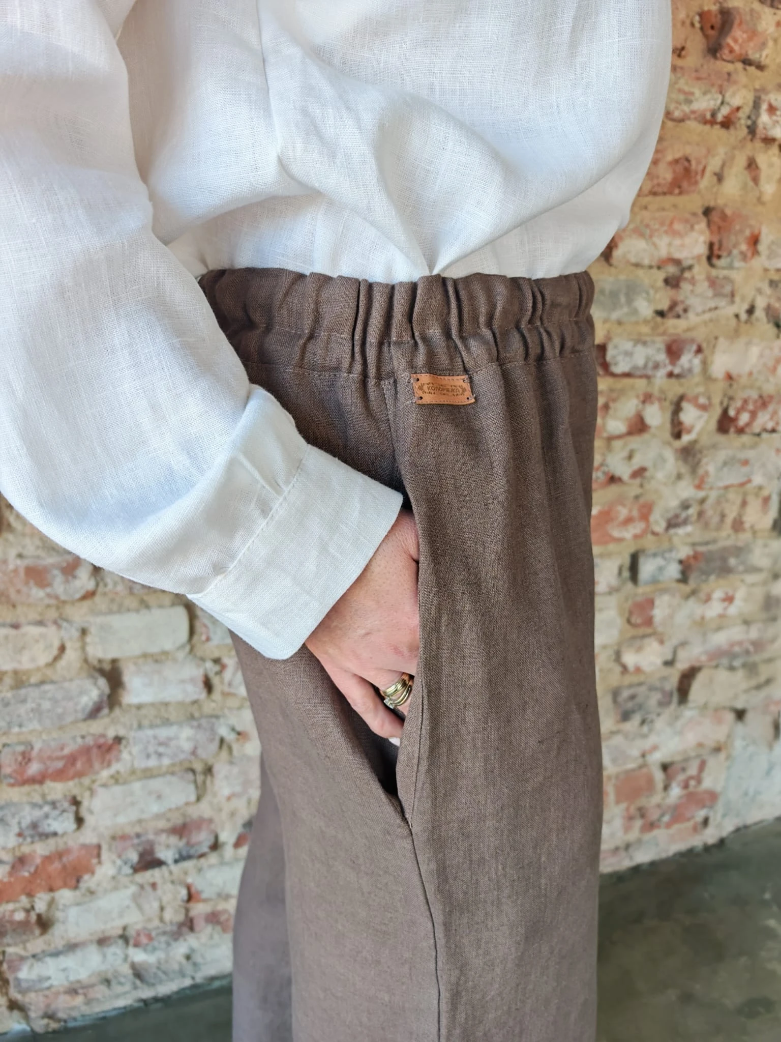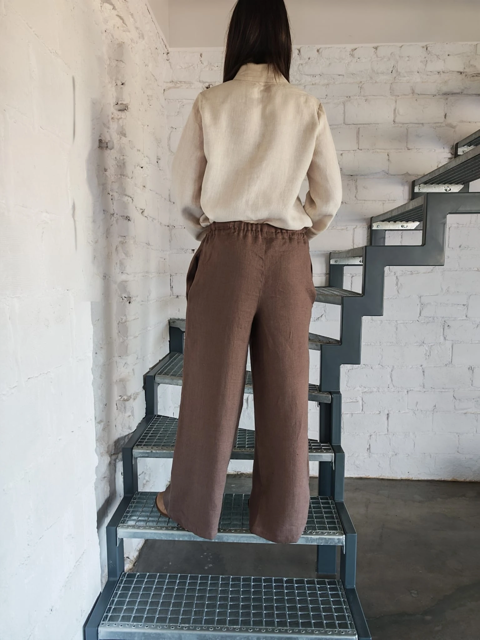 Świetnie komponują się z lnianą koszulą, topem lub lekkim swetrem. Idealne na co dzień, do pracy czy na wyjazd- tworzą spokojną, naturalną garderobę.