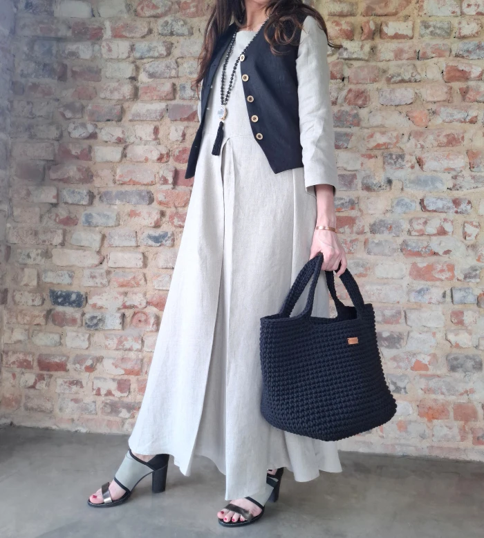 Sukienka zaprojektowana została w taki sposób, by była komfortowa dla każdego. Wyglądem nawiązuje do sukienki Amiszów - skromnej, prostej, nie rzucającej się w oczy. Jednak gdy dołożymy kilka dodatków, możemy totalnie zmienić jej charakter. Ze skórzaną kurtką i ciężkimi butami w rockowym stylu, z dżinsową kurtką i conversami w miejskim biegu. Czy może w słomkowym kapeluszu i lekkich sandałach podczas letnich spacerów. To Ty wybierasz jaki charakter lubisz.