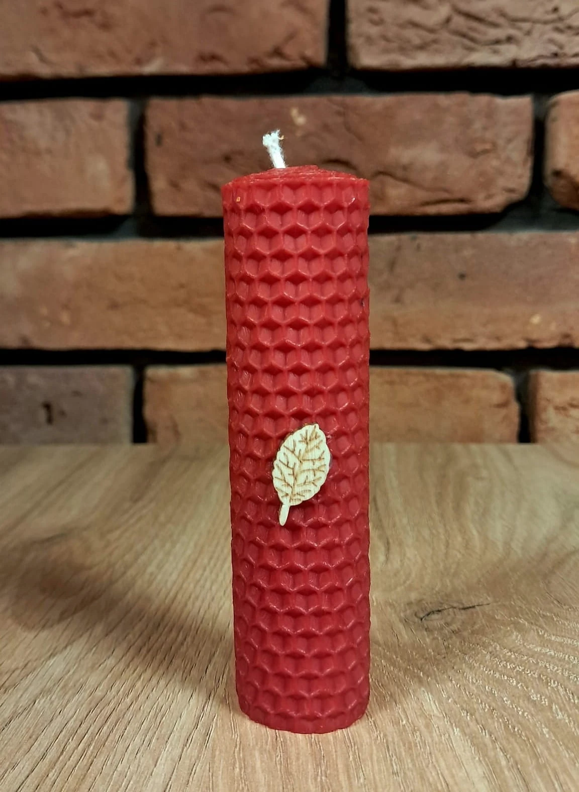 Świeca intencyjna/rytualna z wosku pszczelego/ czerwona-okrągła