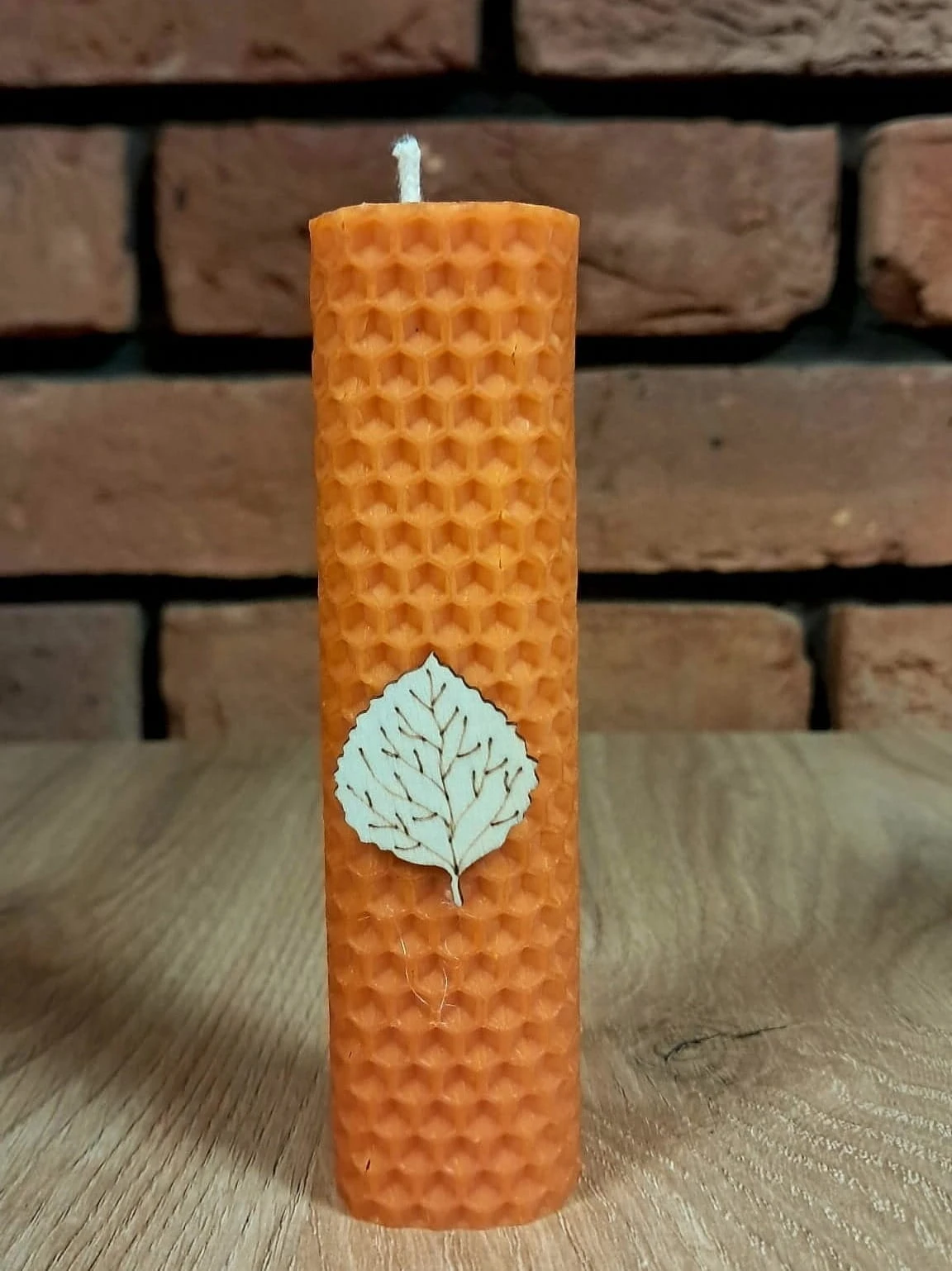 Świeca intencyjna/rytualna z wosku pszczelego/ pomarańczowa-kwadratowa