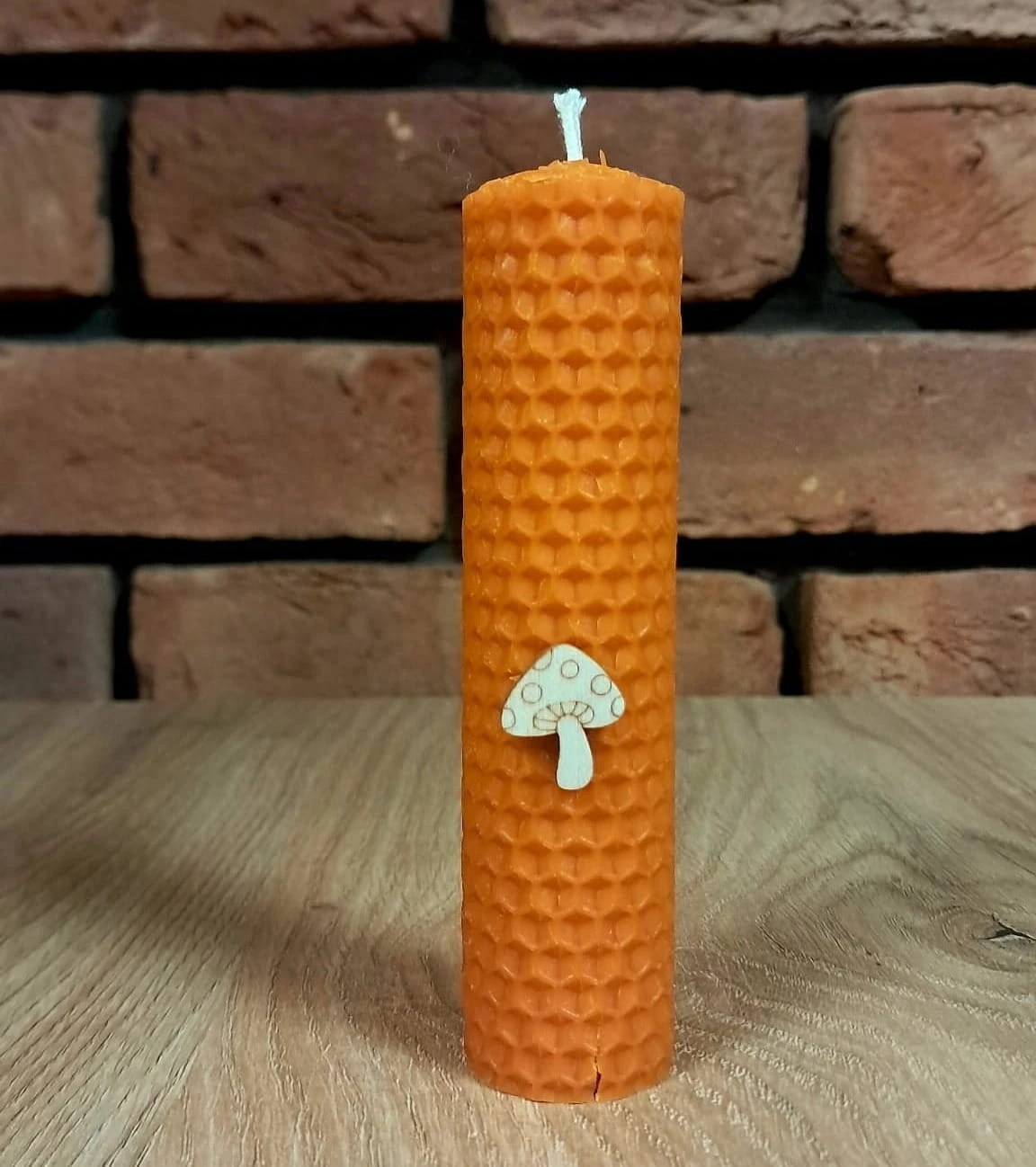 Świeca intencyjna/rytualna z wosku pszczelego/ pomarańczowa-okrągła