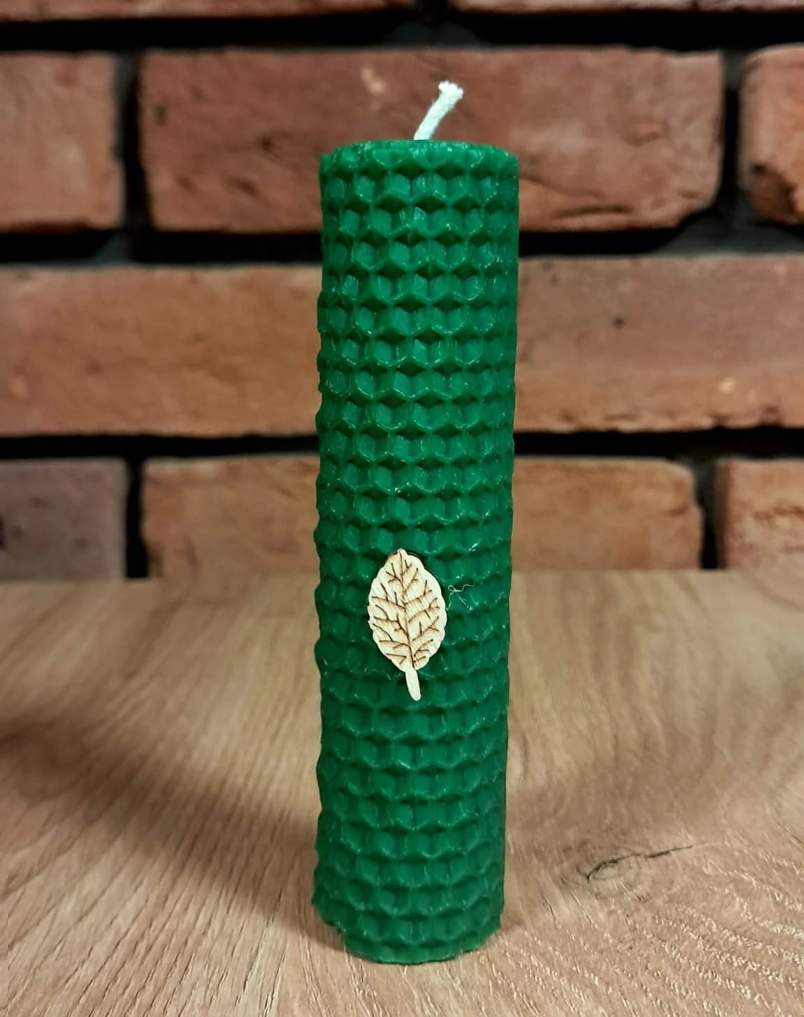 Świeca intencyjna/rytualna z wosku pszczelego/ zielona-okrągła
