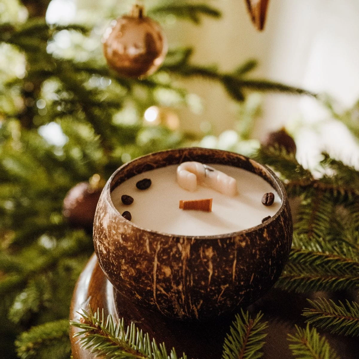Odkryj urok zimowych wieczorów z naszą wyjątkową świecą sojową "Cukierkowe Mochaccino". Umieszczona w oszlifowanej łupinie kokosa o pojemności 550 ml, będzie nie tylko eleganckim dodatkiem do dekoracji świątecznych, ale również idealnym prezentem pod choinkę. Ten zimowy zapach to doskonały sposób, aby wprowadzić do swojego domu ciepło i przytulność w chłodne dni.