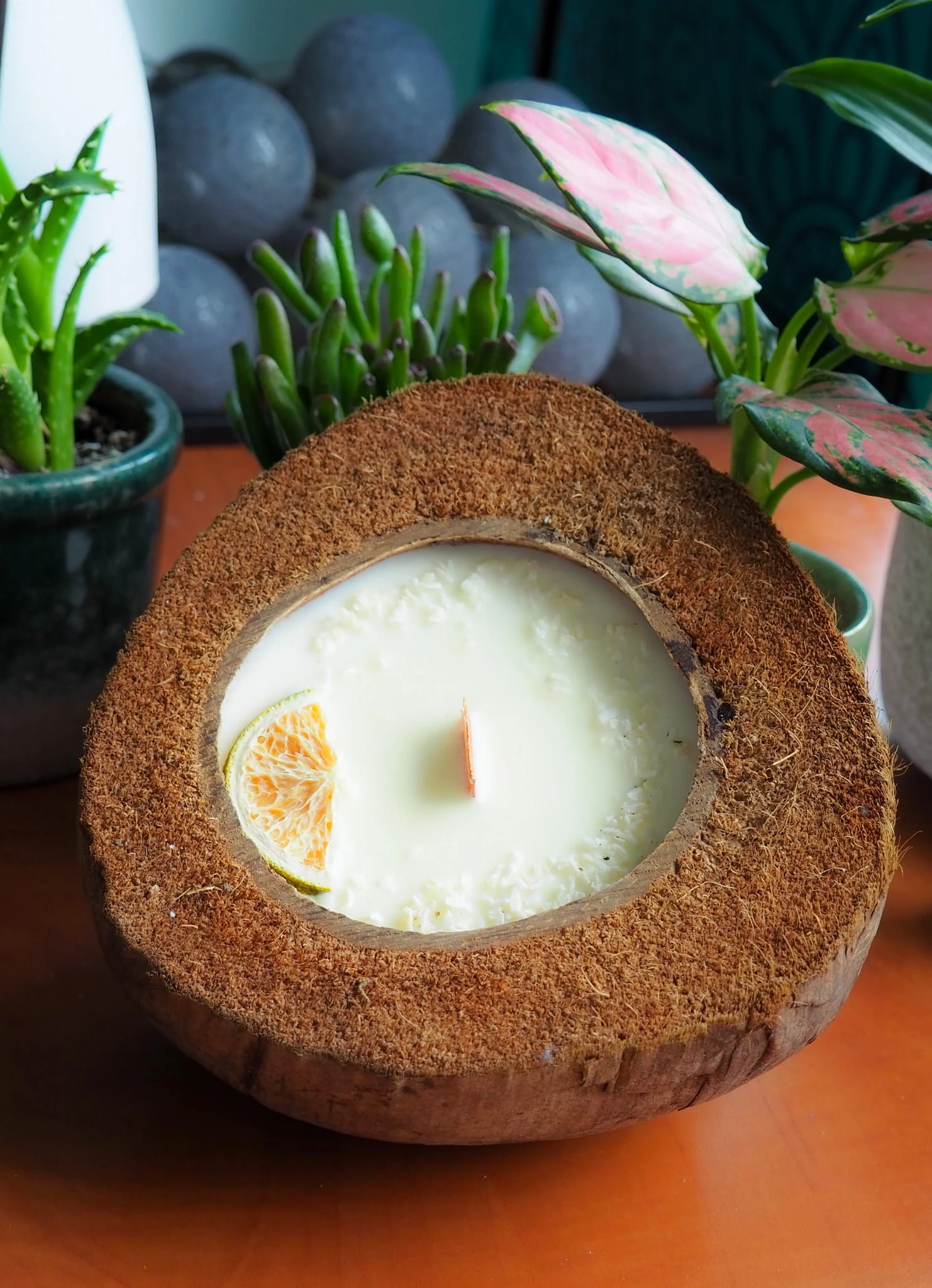 Niezwykle piękna i nietuzinkowa świeca sojowa zanurzona w łupinie z kokosa. Nie tylko wyjątkowo pachnie, ale też jest ciekawym i oryginalnym elementem wystroju wnętrz.