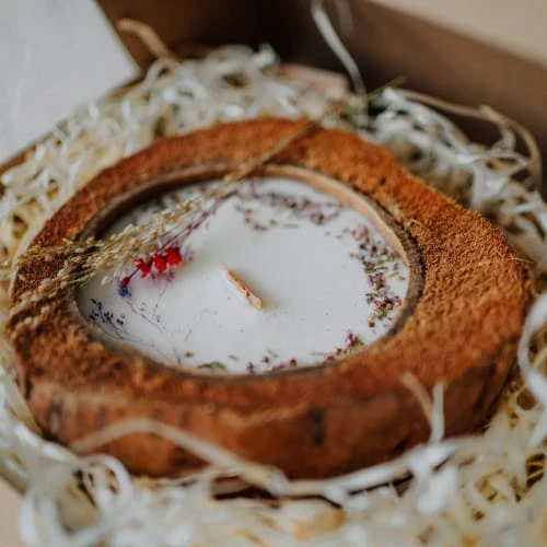 Niezwykle piękna i nietuzinkowa świeca sojowa zanurzona w łupinie z kokosa. Nie tylko wyjątkowo pachnie, ale też jest ciekawym i oryginalnym elementem wystroju wnętrz.