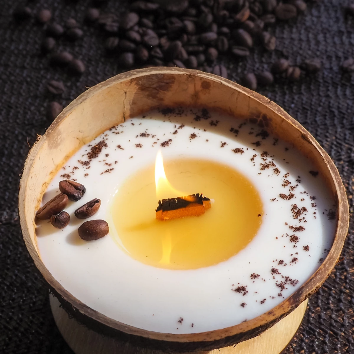 Niezwykle piękna i nietuzinkowa świeca sojowa zanurzona w łupinie z kokosa. Nie tylko wyjątkowo pachnie, ale też jest ciekawym i oryginalnym elementem wystroju wnętrz.