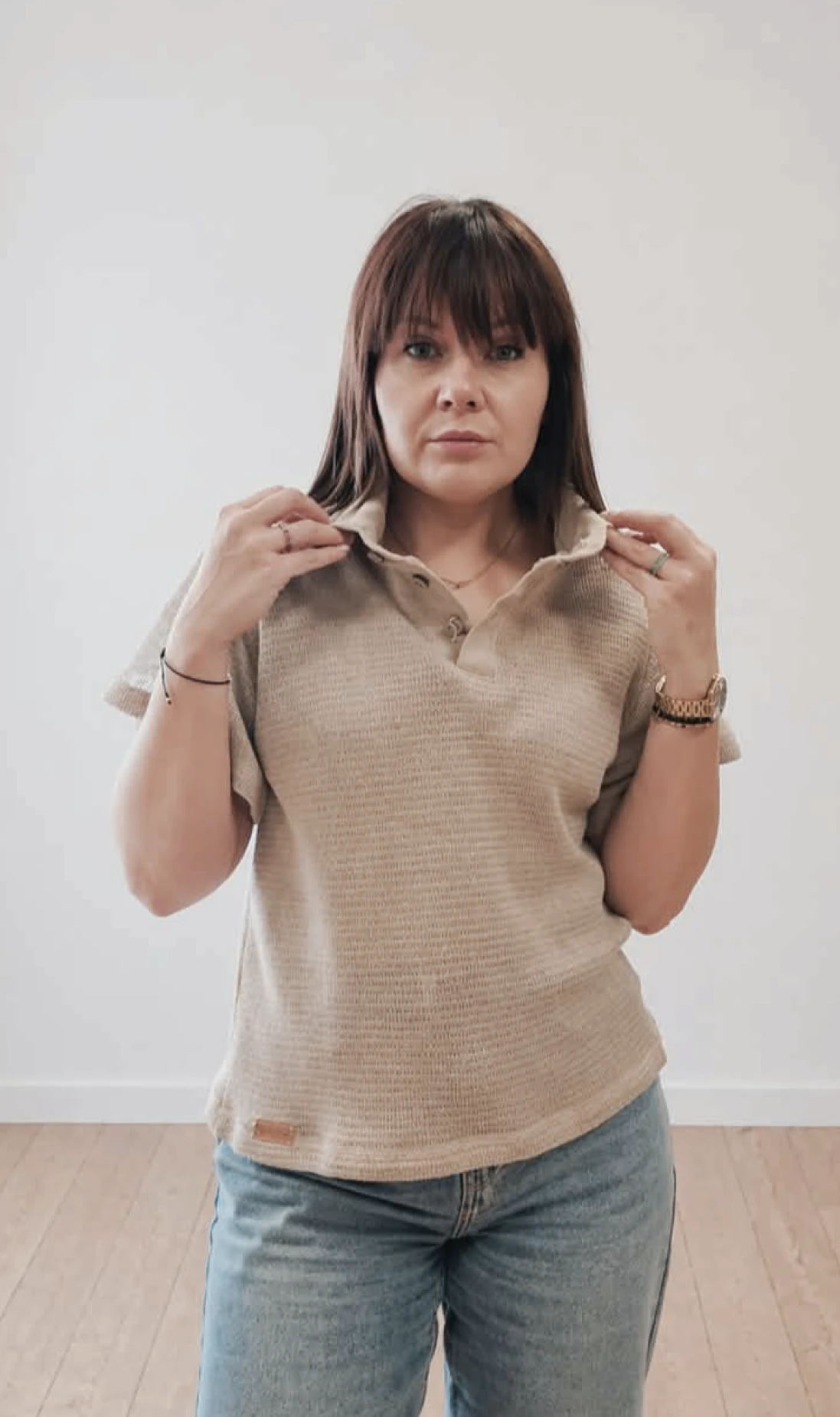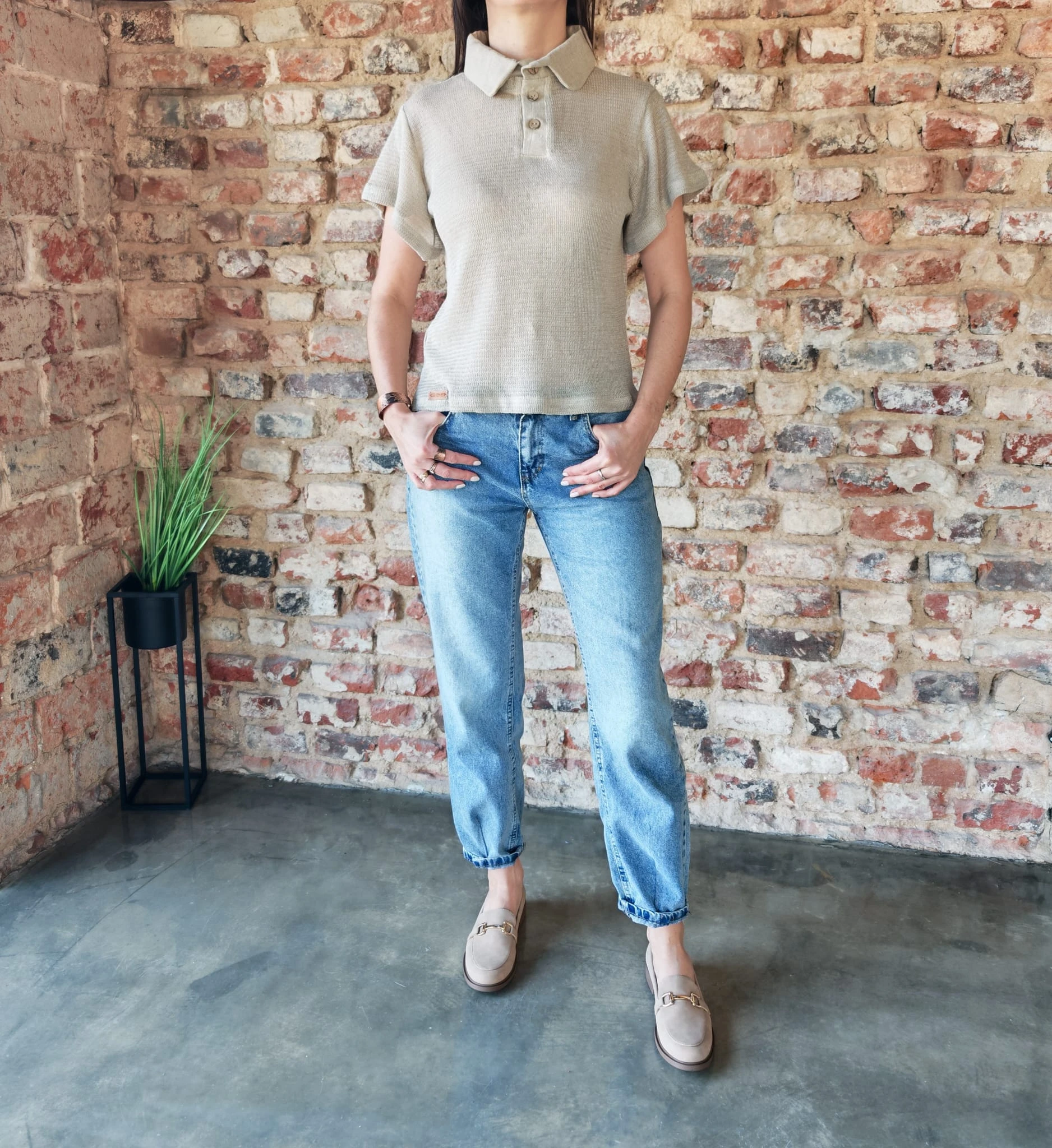 Zapomnij o sztywnych, nudnych koszulkach. Nasza bluzka polo z dzianiny lnianej to propozycja dla kobiet, które szukają ubrań z charakterem.