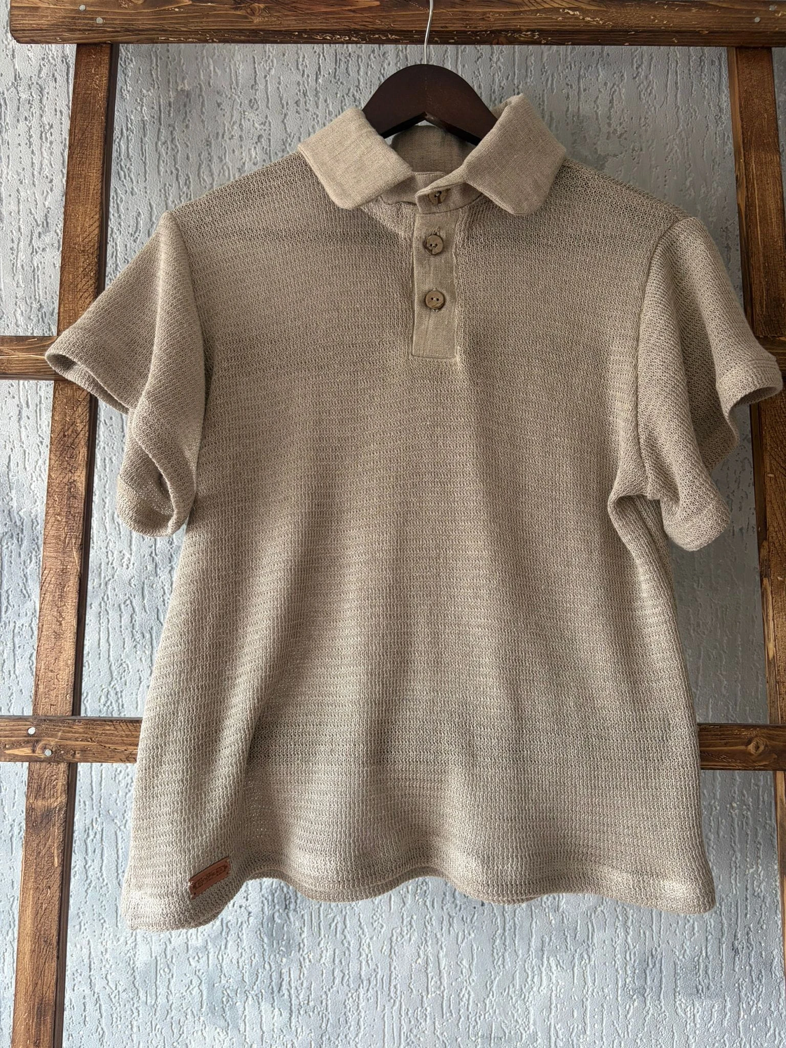 T-shirt polo damski 100% len ,kolor naturalny