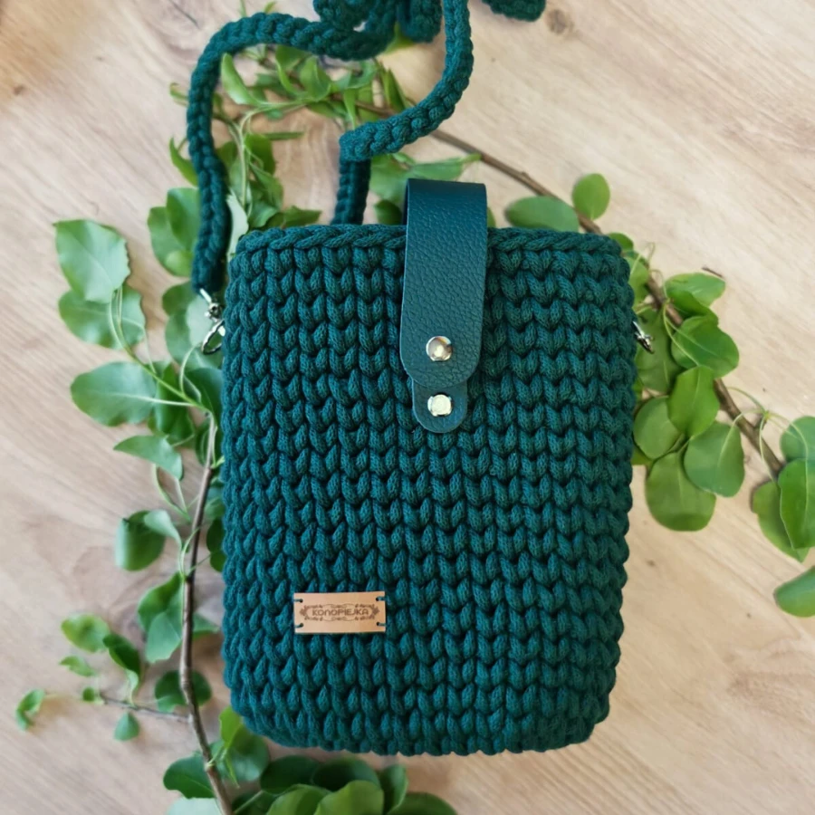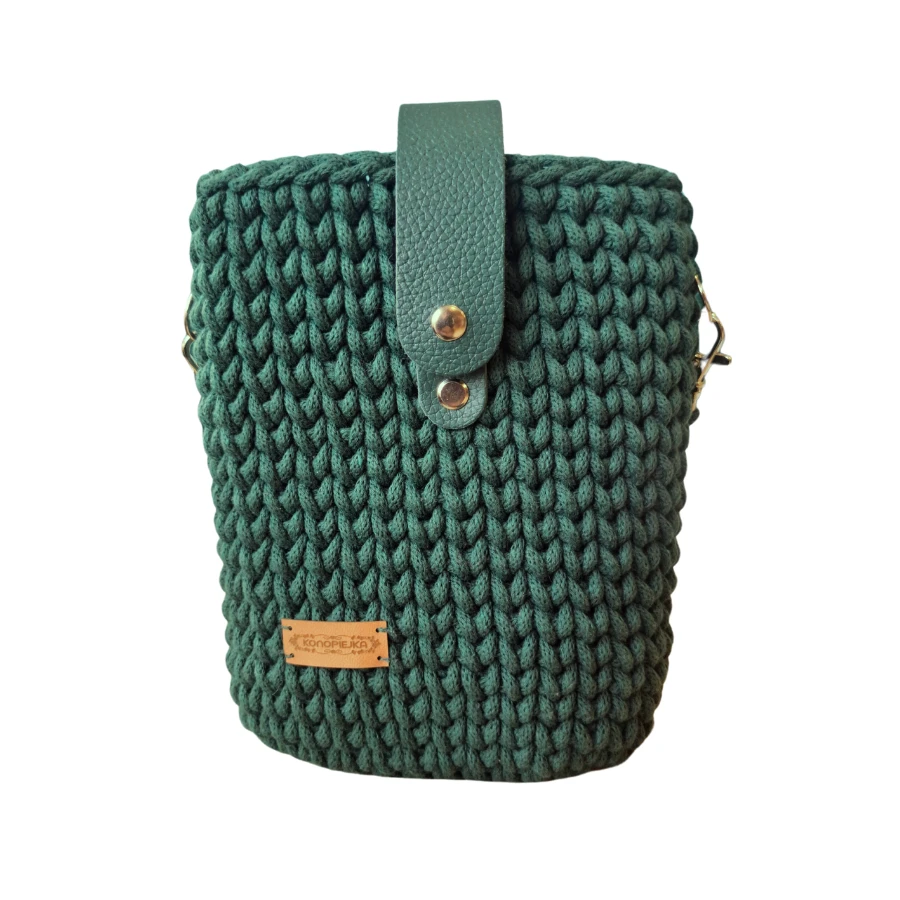 Torebka PLECIONA, listonoszka BUTELKOWA ZIELEŃ