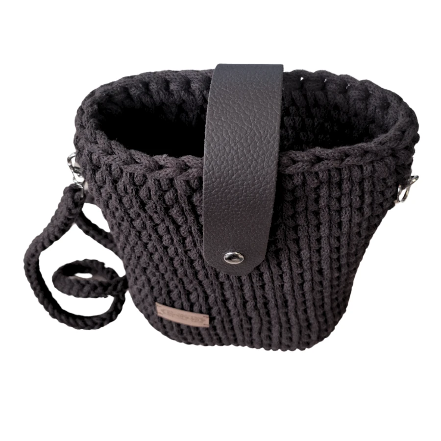 Torebka listonoszka została wykonana ręcznie metoda szydełkową, ze sznurka bawełnianego z bawełnianym rdzeniem. Wykończona elementami ze skóry naturalnej (spód i zapinka) oraz metalowymi. Pasek jest odpinany.