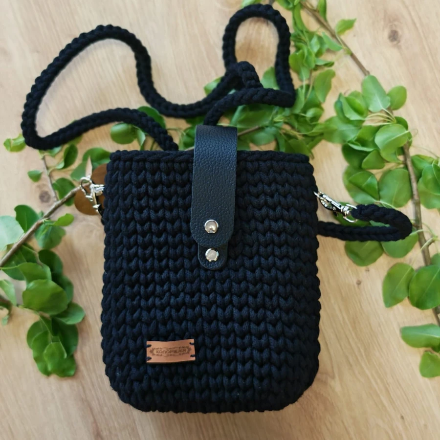 Torebka PLECIONA, listonoszka CZARNA