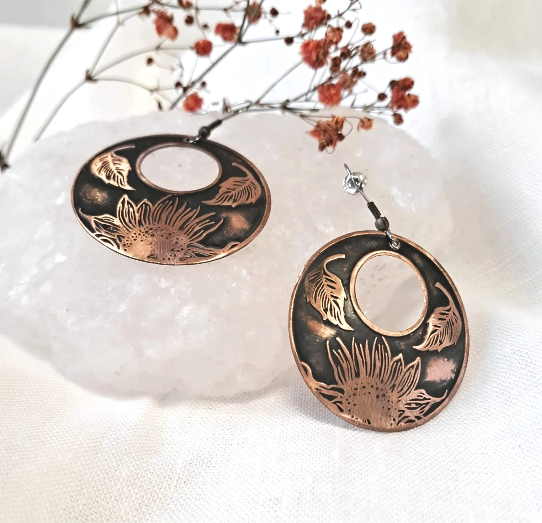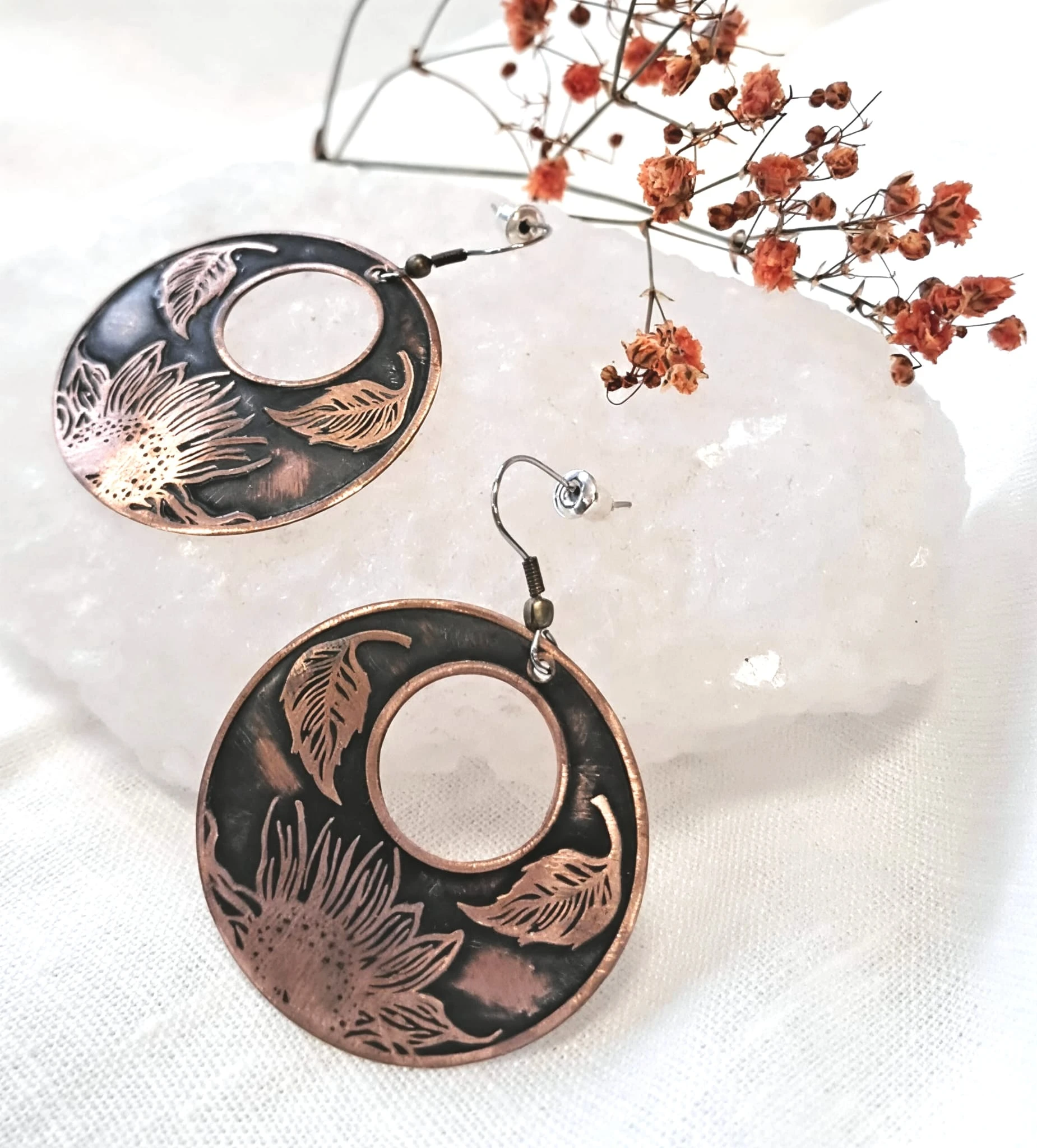 Oryginalne miedziane kolczyki damskie wykonana z czystej miedzi bez domieszek niklu. Klientki które na co dzień noszą biżuterię miedzianą zauważyły poprawę samopoczucia, mniejsze zmęczenie i wzrost energii.